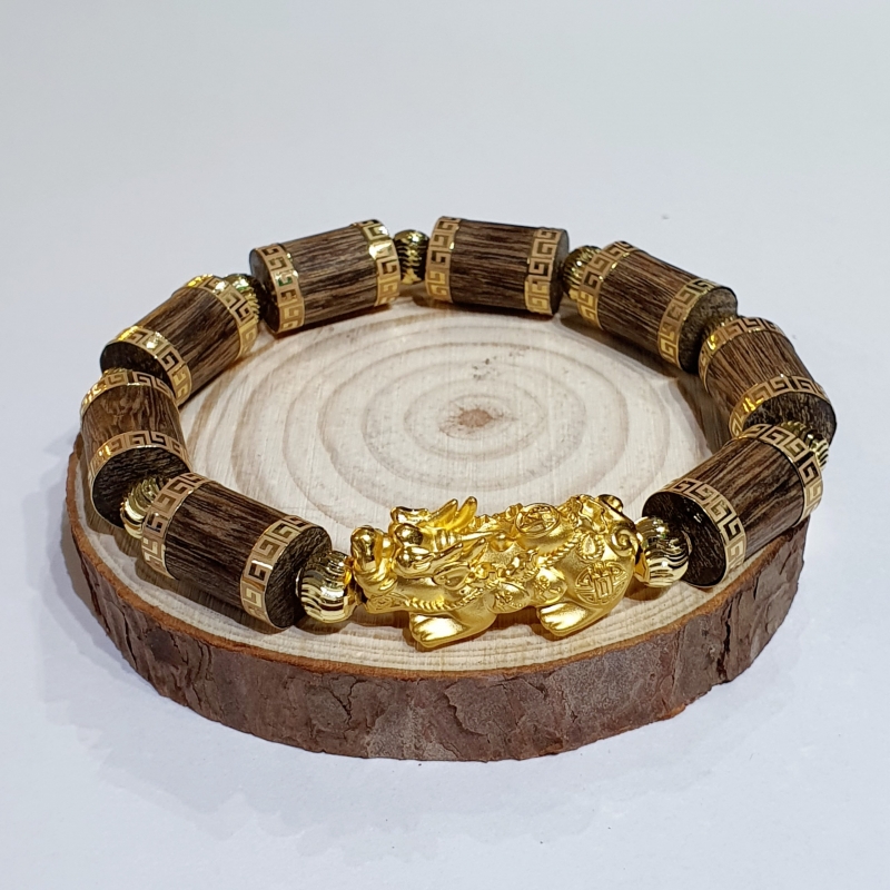 Đặt mua Vòng Tay Phong Thủy Trầm Hương Sánh Chìm Thiên Nhiên Bọc Vàng Tỳ Hưu 24K